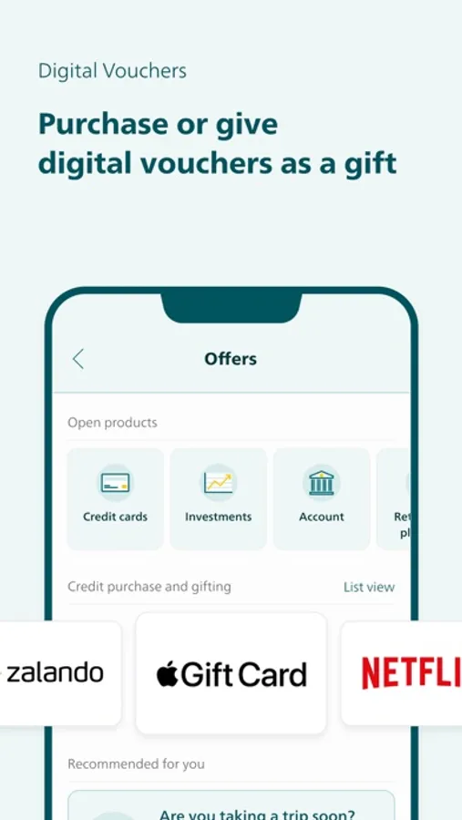 • Buy or gift vouchers for iTunes, PaysafeCard and many other providers or top up prepaid credit for your mobile phone.
