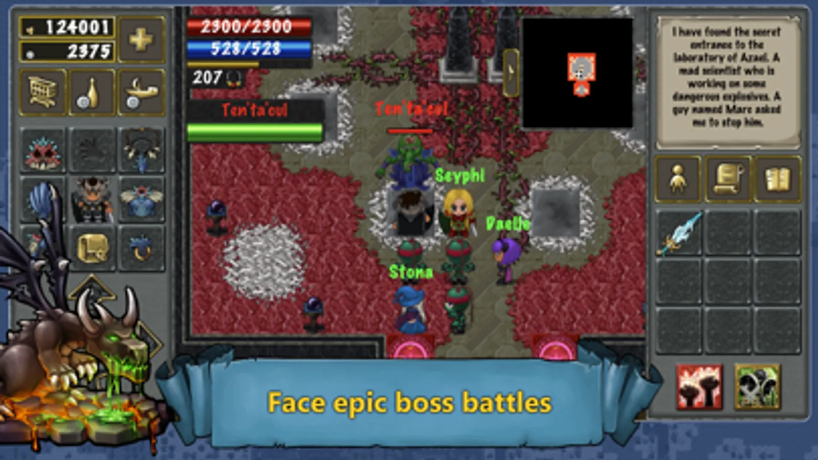 Go on a journey with hundreds of hand crafted and unique quests. Slay hundreds of different monsters and fight powerful bosses.