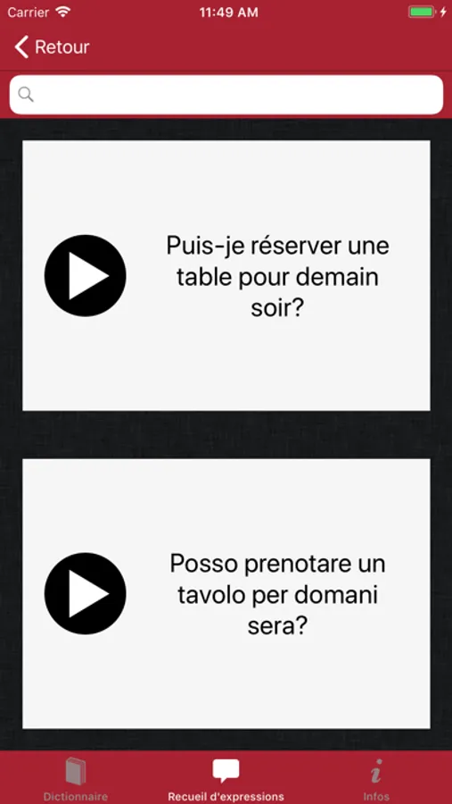 Use this app on iPhone or iPad to access thousands of common French and Italian translations, and listen to more than 800 words and phrases recorded by native speakers, with no internet connection required.