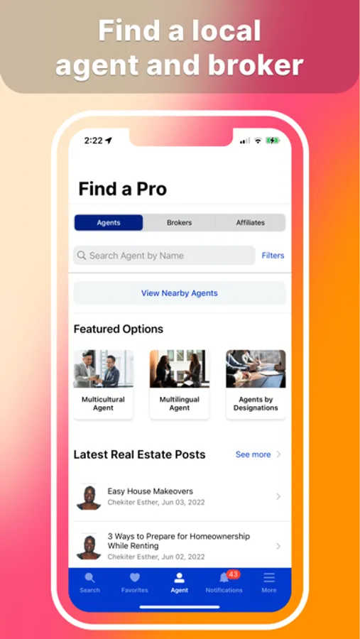 • The Nearby Agents feature allows consumers to find agents who have listings near their location or agents who have had showings nearby.
