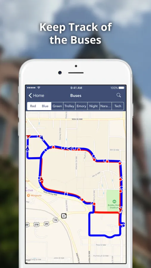 - View up-to-date locations and time predictions for Georgia Tech Stinger buses and Tech Trolley.