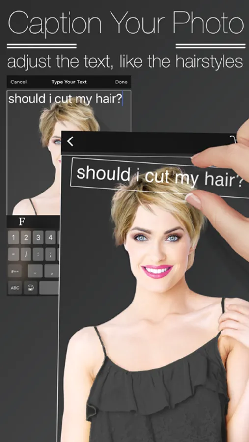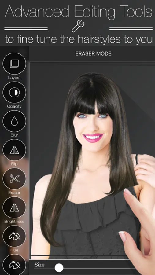 > Try on 100's of REAL hairstyle. The hair will look real, which means you can get real opinions from friends, family and even your hairdresser.