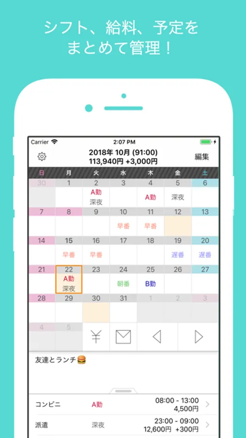 メールで友達へあなたのシフトを簡単に送信!
