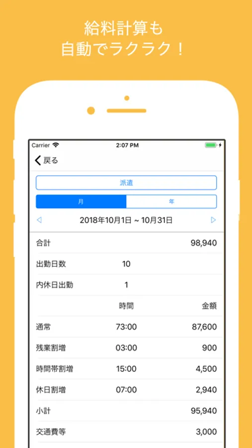 月別、年別での給料詳細レポート表示機能
