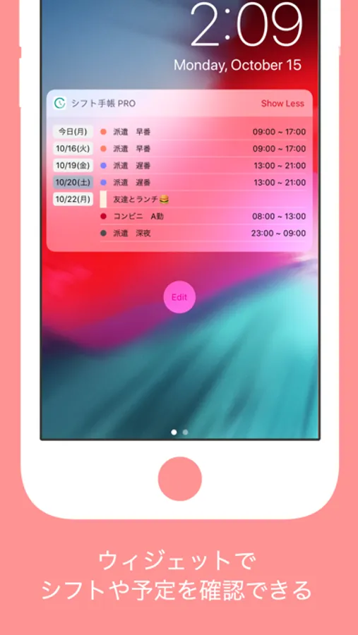 ウィジェットにてすぐにシフトを確認する機能
