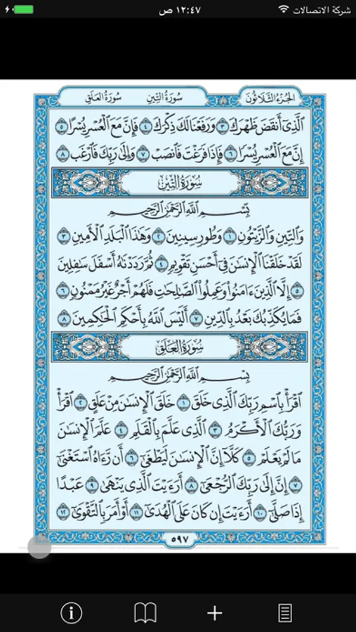 - بنقرتين مزدوجة يمكنك التحول لعرض نص القرآن بدون إطار أو حواشي.