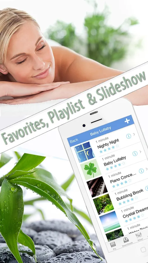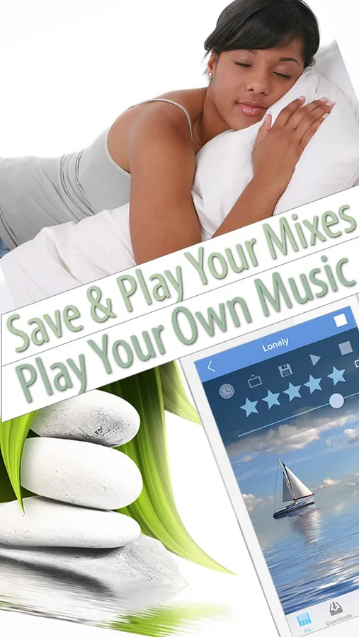 * Ability to play and combine your iPod music library with our sounds. Mix you favorite jazz melody with gentle sound of rain or combine