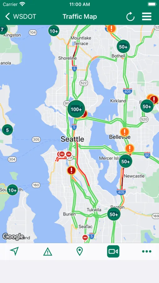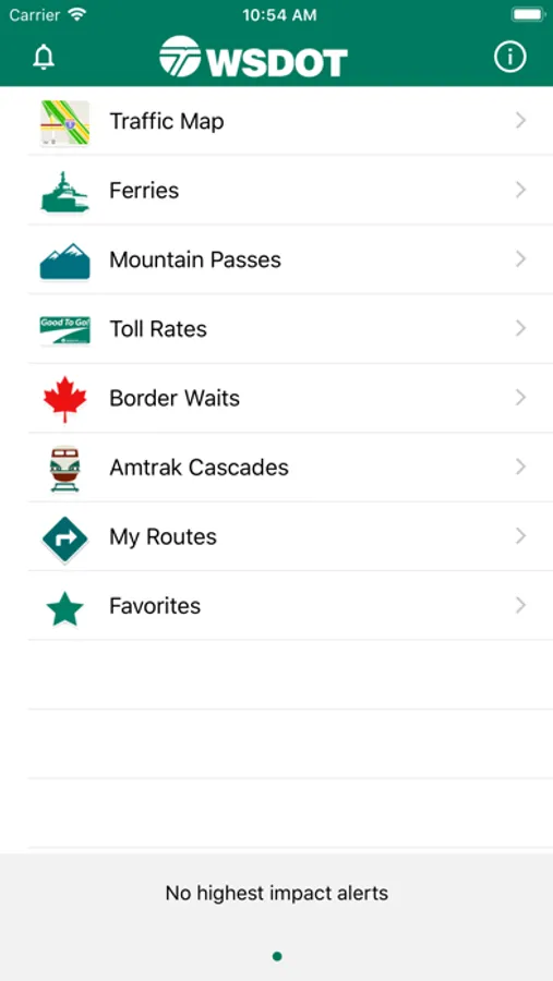• Traffic Map with statewide traffic cameras and travel alerts.