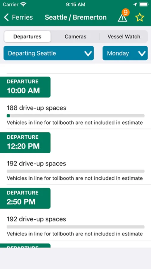 We compared the data coming from the Apple app and the android version and the Apple app is largely delayed compared to the Android one. Don’t have faith in this apps data and timing or you will be sitting at a terminal waiting for the next ferry because you did.