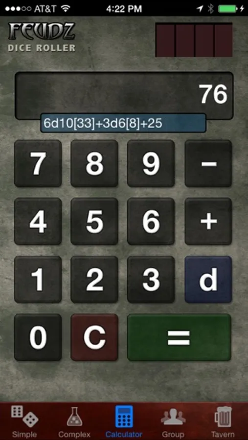 + Custom keyboard for fast entry ( a first for dice apps ), puts +, -, d and 0-9 on one keyboard.