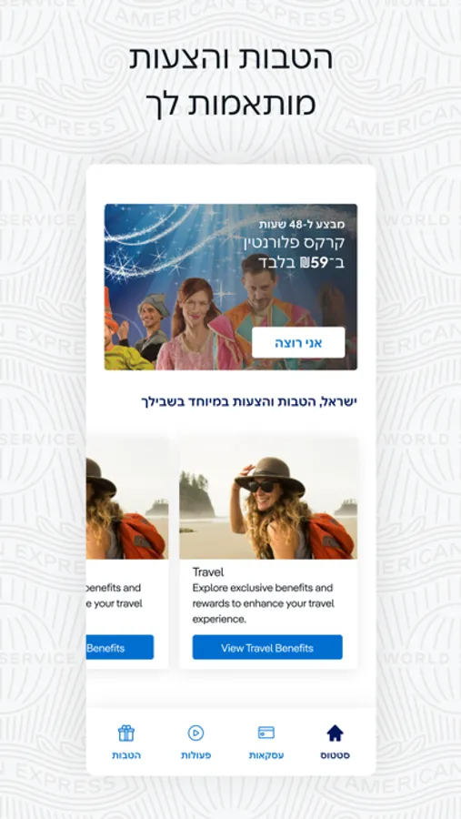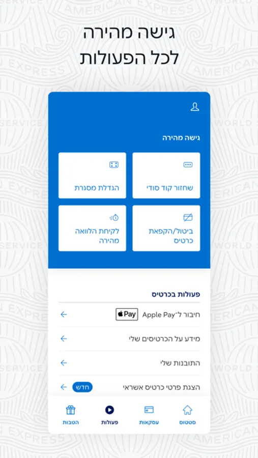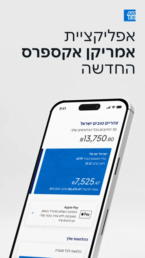 נעים מאוד, אפליקציית אמריקן אקספרס, הבית של כרטיסי האשראי והשירותים הדיגטליים שלך.