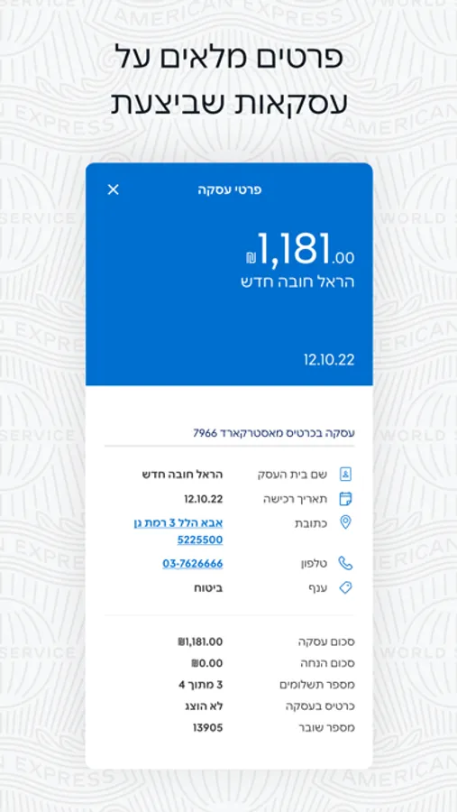 תשלום בארנק הדיגיטלי עם כרטיס אמריקן אקספרס - אם הנייד גם ככה תמיד איתך, למה לא לשלם איתו? נרשמים דרך האפליקציה ומשלמים ללא קוד סודי וללא צורך בכרטיס הפיזי באופן מהיר ומאובטח
