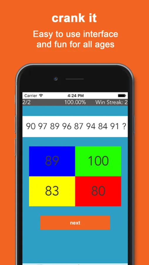 The object of the game is to determine the next number of a given sequence. Different patterns of sequences are created algorithmically for an endless supply of combinations. Which means, the more you have to play, the stronger your mind becomes! It’s protein for the brain!