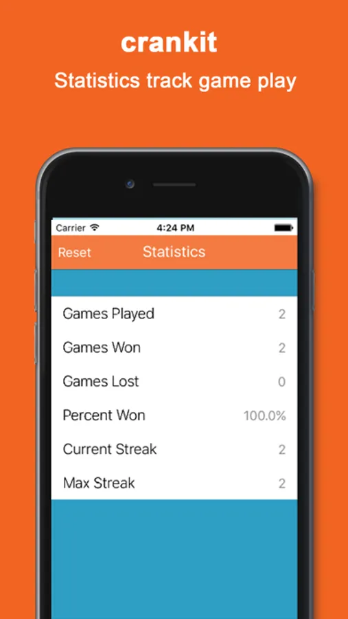 The application also provides statistics which can help you gauge your performance. Statistics kept include: number of games played, number of games won, max streak, etc.