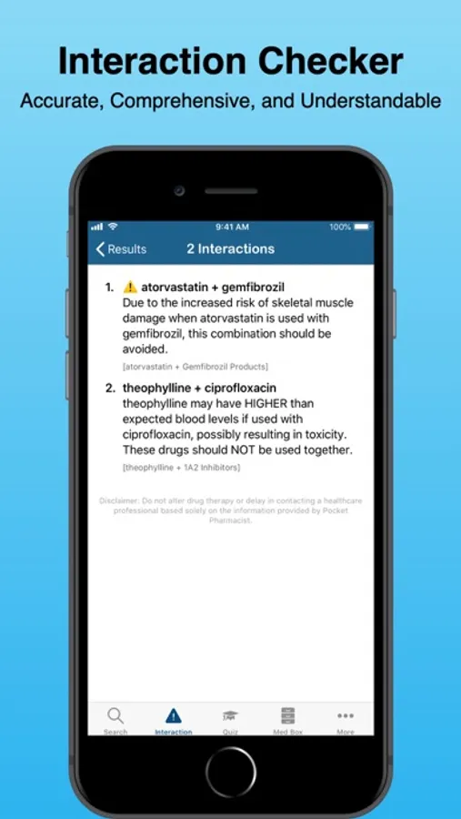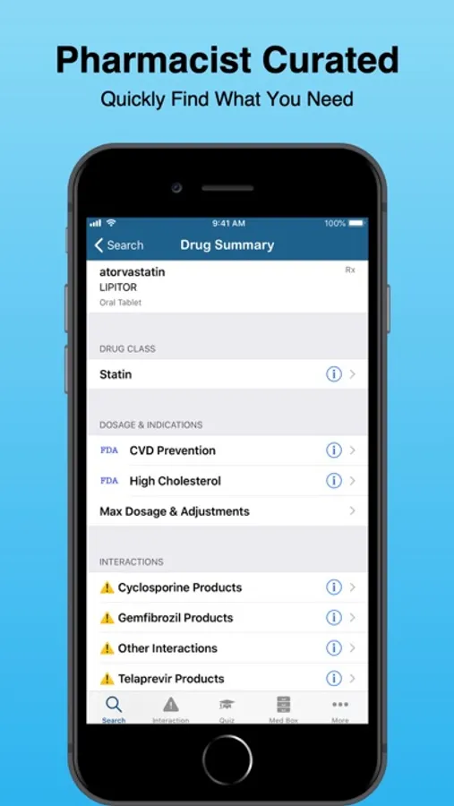 ∙ Provides interactions as well as overlapping precautions and side effects (no other app has this feature)