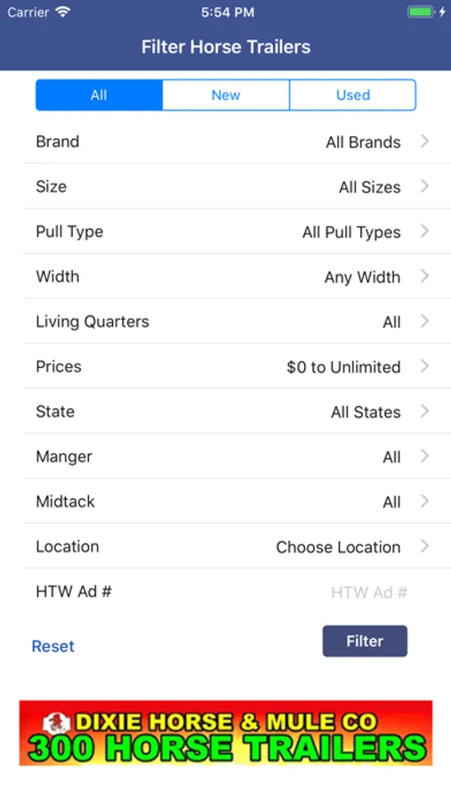 Use the filter and sort feature to quickly find your perfect horse trailer.