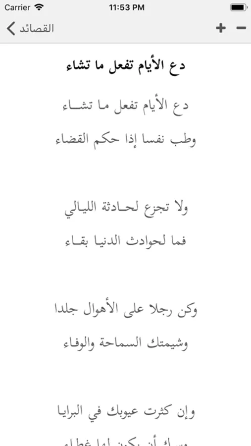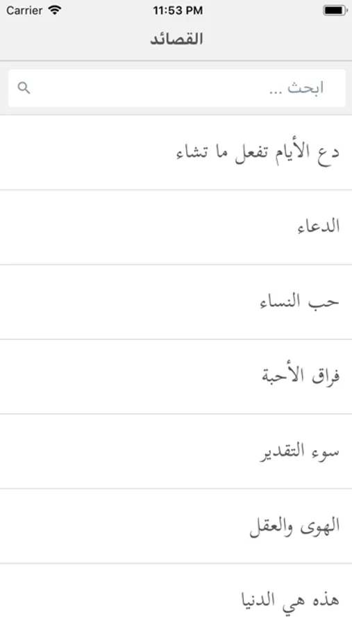 يحتوي البرنامج على ديوان الامام الشافعي كاملا مع توفير امكانية البحث ضمن القصائد