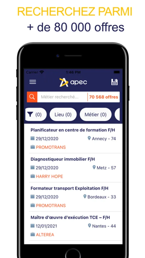 Où que vous soyez, à tout moment, accédez à + de 150 000 offres d'emploi cadre, et à + de