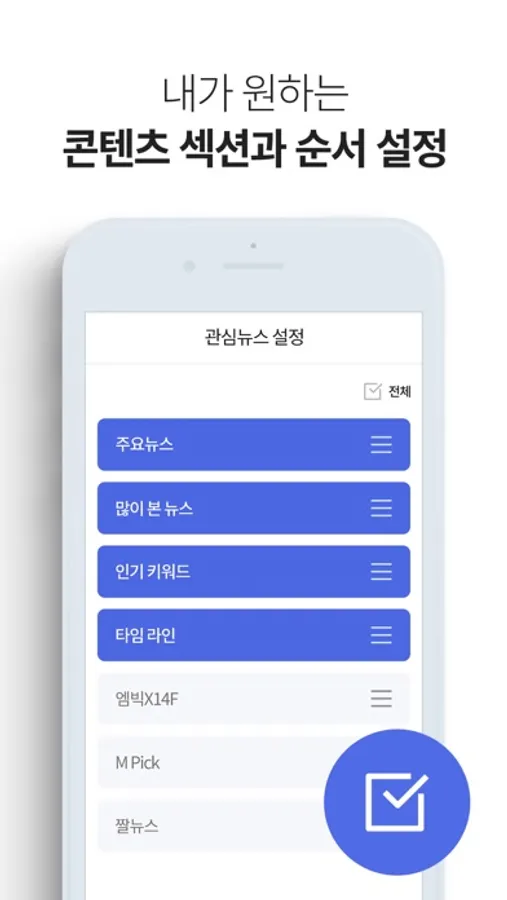 - 원하는 콘텐츠 섹션 선택과 순서 설정이 가능합니다.