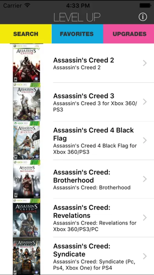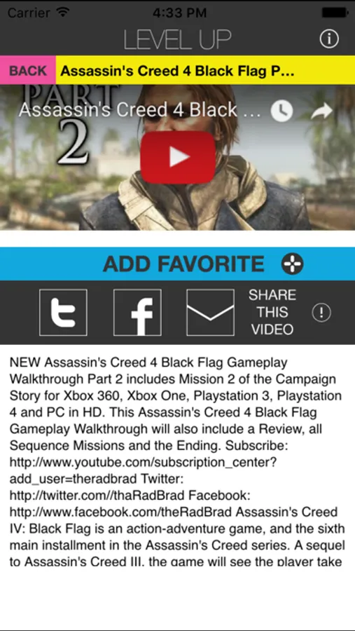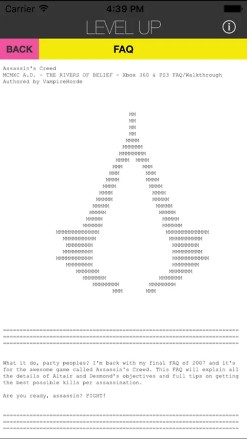 Level Up is the premier Video Game companion application. Level Up provides FAQ's, Unlockable Items, Achievements and level by level video walkthroughs of all your favorite games.