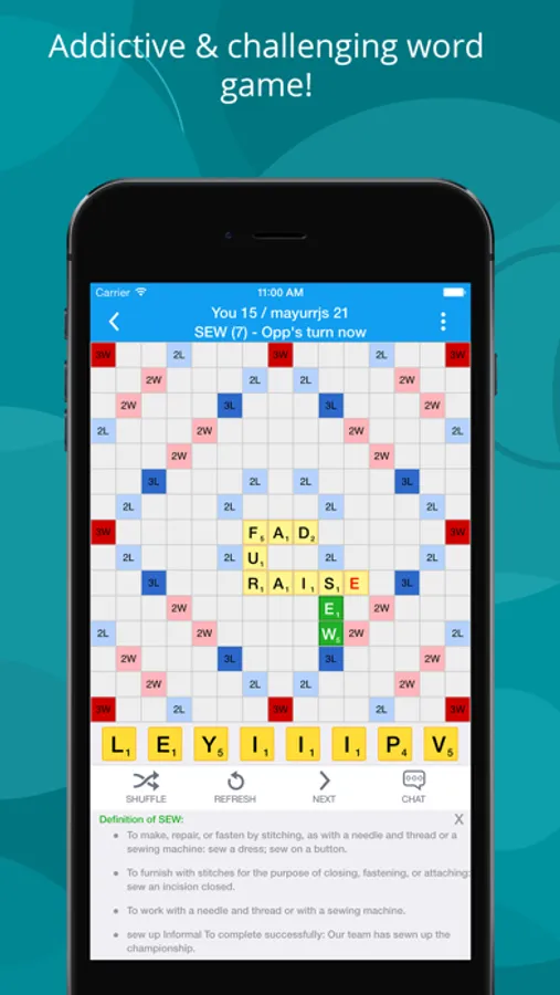Lexulous teases your brain and gives you a chance to test your word knowledge. Each turn is like a new word puzzle.