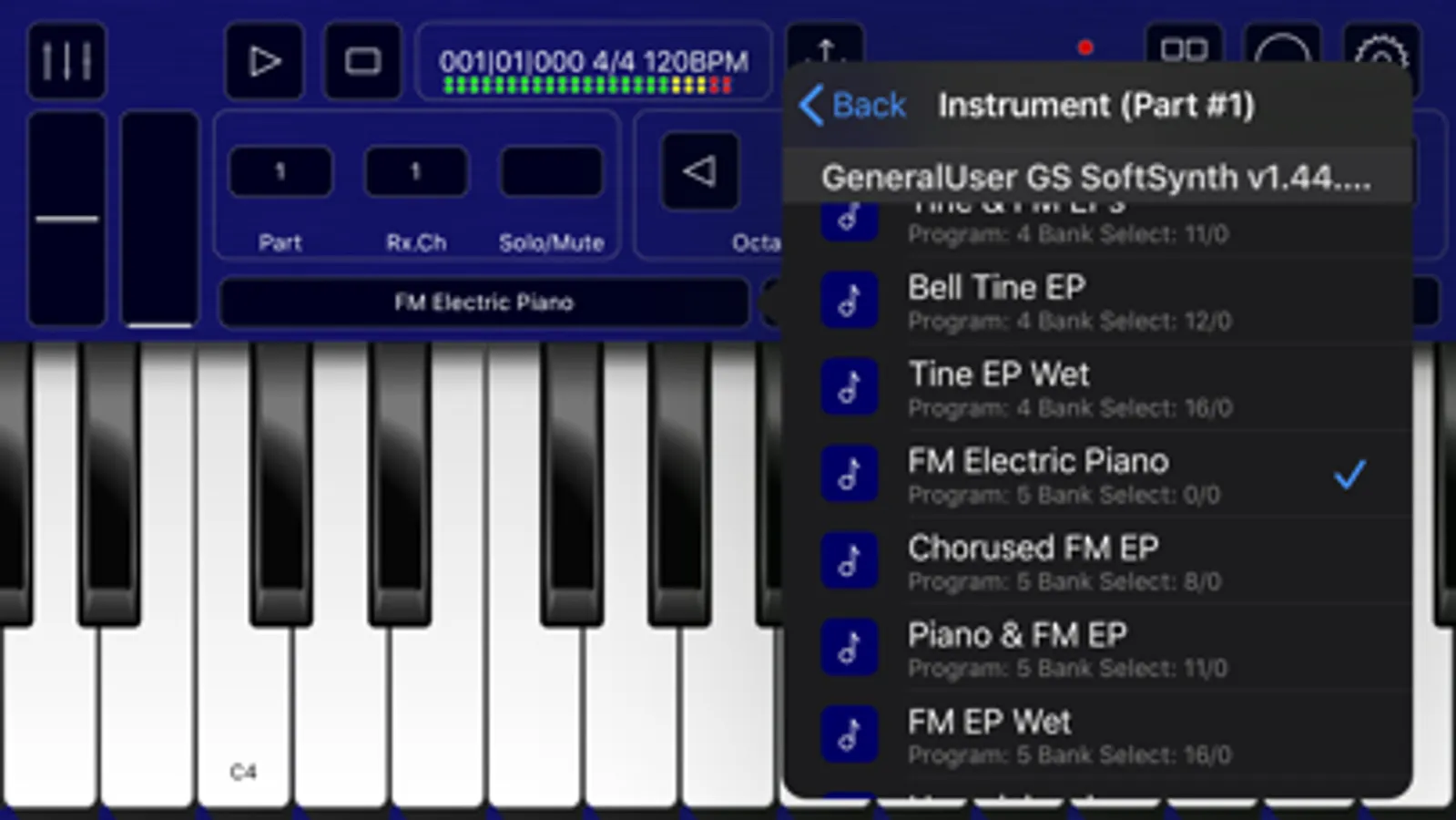 All standard MIDI messages are supported, and your iPhone and iPad can be used as a GM (General MIDI) sound module by using pre-installed GeneralUser GS SoftSynth v1.44.sf2 (S. Christian Collins).
