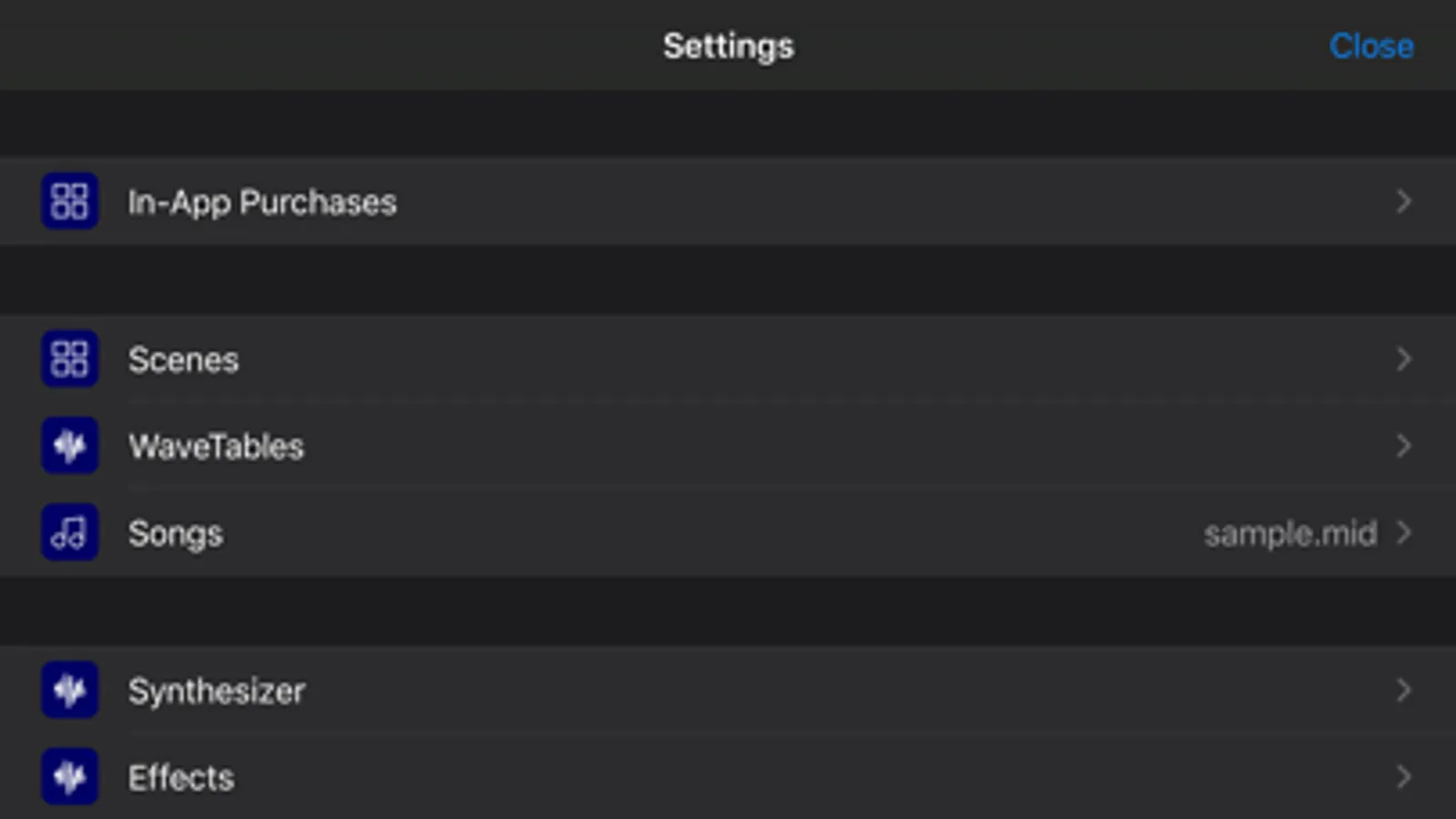 bs-16i has the synthesizer engine that has been adopted for many professional/commercial types of equipment. Using SoundFont / DLS libraries, you can play with your great number of instruments. With Hi-Res Engine option prepared as an In-App purchase option enables high-quality and low-noise audio outputs by 100% floating-point calculations.