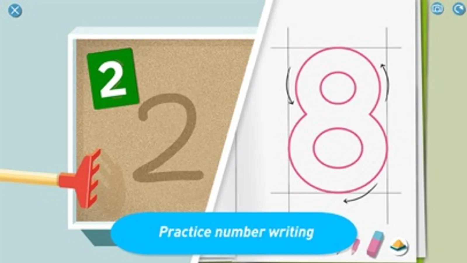 • Practice counting, reading and writing numbers with 8 fun games