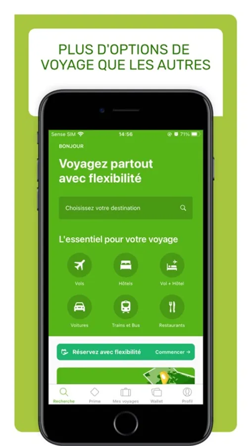 Notre appli de voyage vous propose non seulement des vols pas chers, vacances, des offres dans certains hôtels et des locations de voiture pour vos voyages... téléchargez l'appli et :