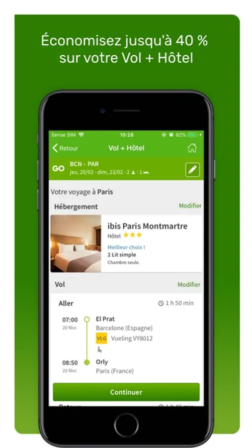 Go Voyages vous permet de trouver les meilleures offres pour les vols, les hôtels et les locations de voiture. Recherchez, comparez et réservez des billets Vol + Hôtel dans notre appli de voyage pour bénéficier d'une réduction de 40 %.