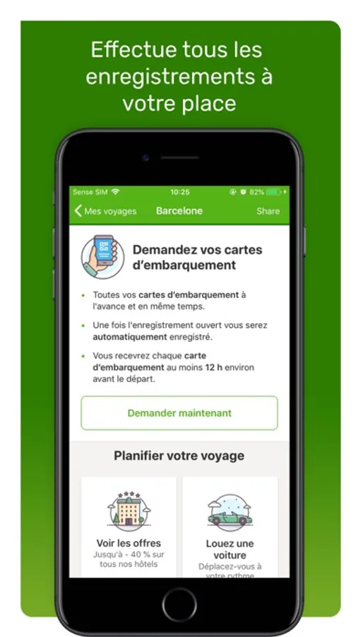 Vous pensez à voyager ? Recherchez-vous un vol abordable ? Téléchargez notre appli et faites le voyage de vos rêves ! Nous effectuerons également l'enregistrement pour vous, dès qu'il sera disponible, pour vous permettre d'apprécier pleinement votre voyage.