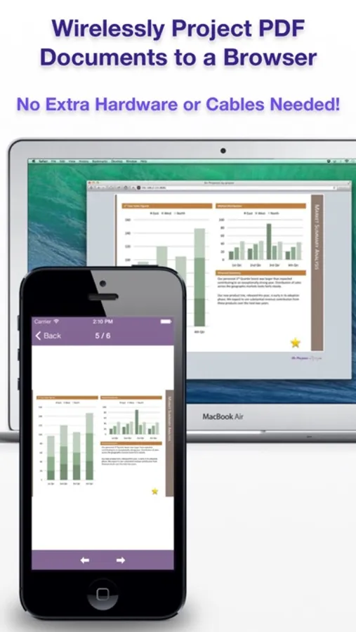 Air Projector projects PDF slide decks, documents, and photos wirelessly from your iPhone or iPod Touch to one or more web browsers connected on the same local network.