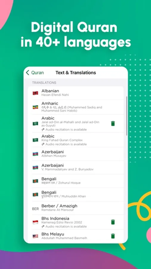 • The Holy Quran (Al Qur'an): Immerse yourself in the beauty of the Quran with audio recitations, phonetics, translations, and colored Tajweed for enhanced pronunciation and understanding.