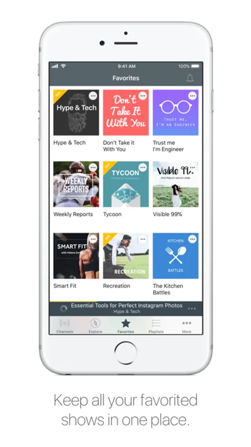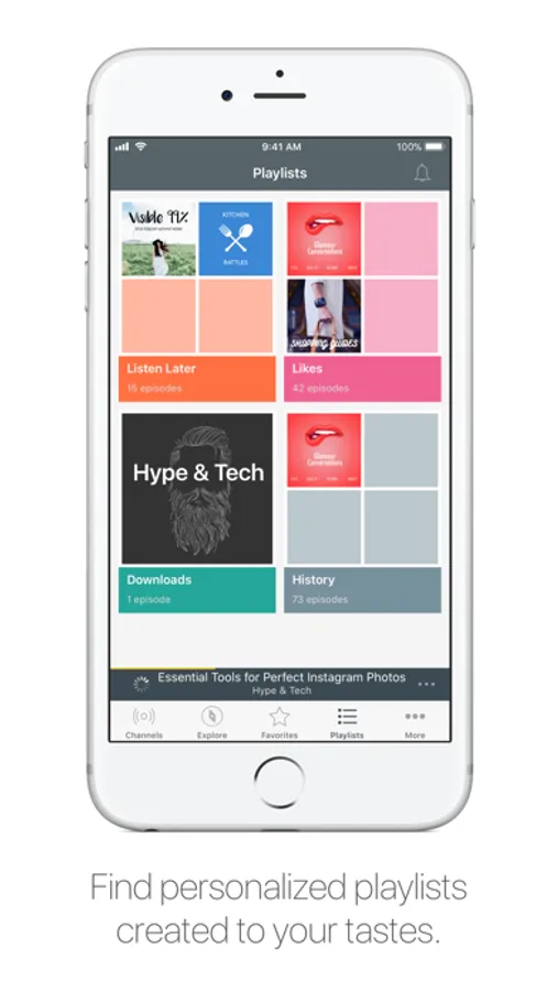 - Save all your preferred podcasts in one podcast player app thanks to the Favorites section, or place episodes in the Downloads or Listen Later playlists to access them at any time and offline.