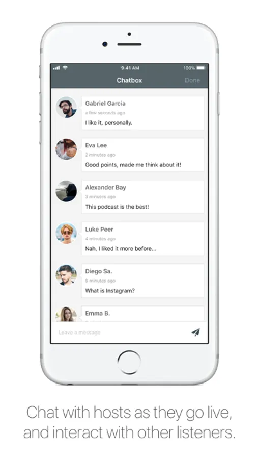 - Give podcasts your feedback with a like and a comment to the episode, support your favorite podcasts with a share. Plus, chat with podcast hosts as they go live, and read others' comments from the player screen.