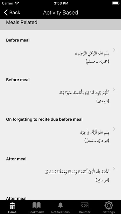 Al-Dua is a handy collection of duas (prayer of supplication) for use in a range of situation.
