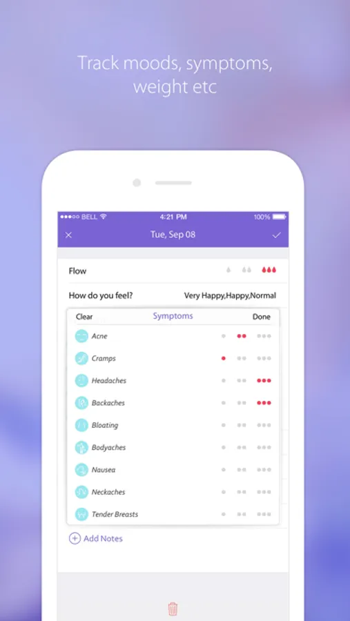 Whether you are trying to get pregnant or trying to avoid pregnancy, Period Planner is the best to help you track and predict your ovulation and fertile days to increase or decrease your chances of getting pregnant!
