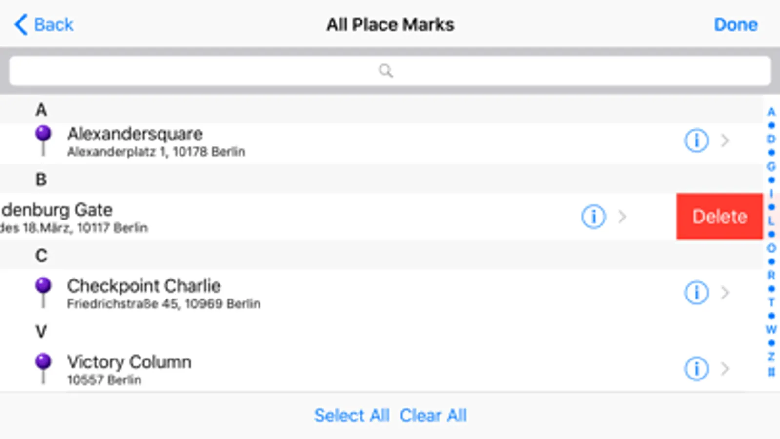 • Searching / Filtering of contacts and place marks (*).