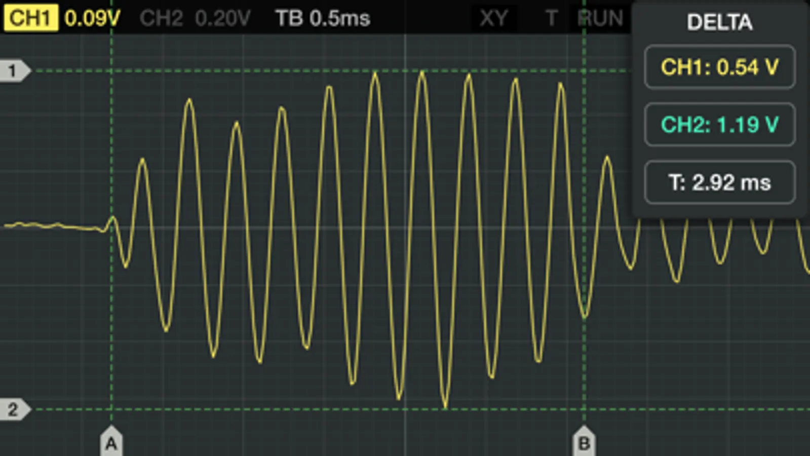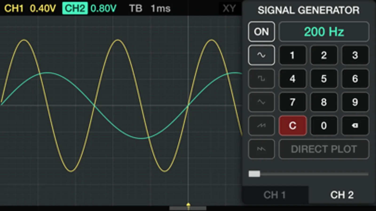 Oscilloscope app is great for analyzing audio range signals, or learning oscilloscope measurement basics. The interface includes many standard oscilloscope controls, such as: triggering, time and voltage per division, signal measurement cursors, and more.