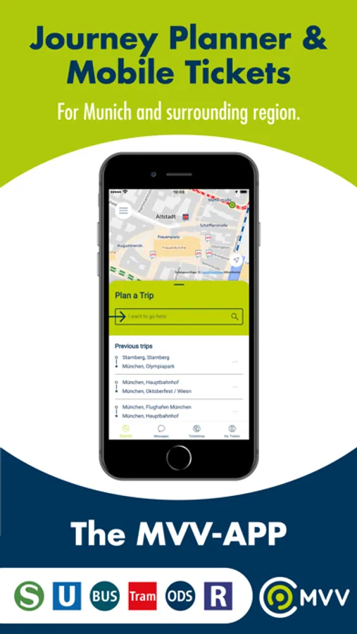 It provides travel information for the entire public transport network in Munich and the surrounding regions (districts of Dachau, Ebersberg, Erding, Freising, Fürstenfeldbruck, München, Starnberg and the norhern part of Bad Tölz-Wolfratshausen) – no matter whether you go by train, (sub)urban railways, underground, tram or bus. In many cases with real-time information. With the MVV-App you can also purchase selected MVV tickets with your smartphone or tablet on the go. Register once and you have the option to either buy the single trip tickets or you can choose to buy one of our day tickets for your stay in Munich. Besides, the MVV-App provides additional information on public transport in the entire Greater Munich Area, such as public transport and tariff maps as well as any changes in the timetables.