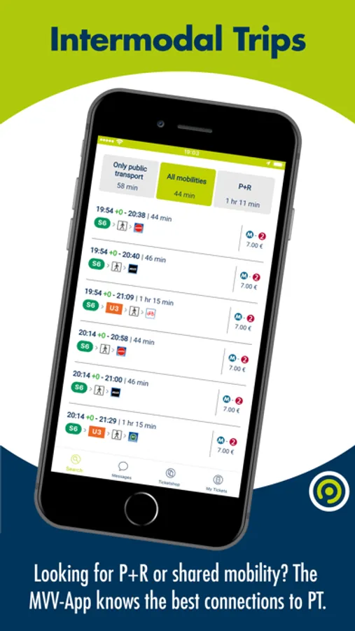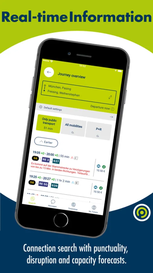 • Trips: The journey planner will help you to find the quickest route from A to B – in many cases with real-time information. Just enter the name of a stop, a point of interest or any desired address in Munich or the surrounding districts as your starting point or destination. With GPS you can also use your current location. The results include all footpath directions. The MVV-App also helps you buy the correct ticket for the selected journey. With just a few clicks you can purchase mobile tickets directly from the journey planner.