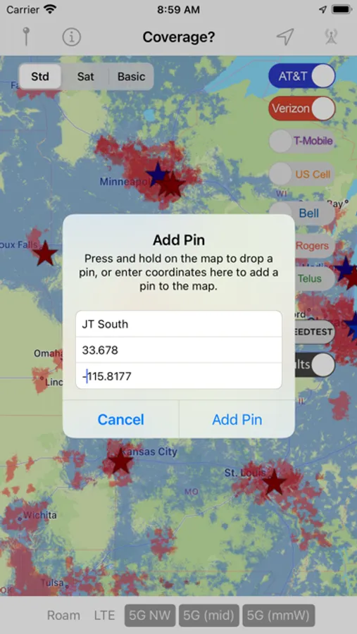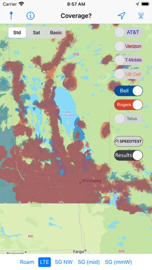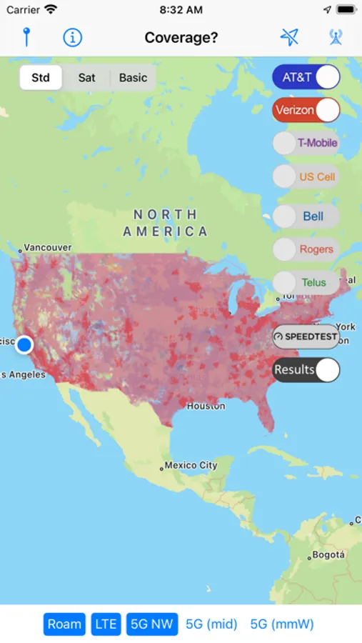 Directly overlay and compare cellular carrier coverage maps! Perfect for travelers - research where you're covered across the USA (and now Canada!!)