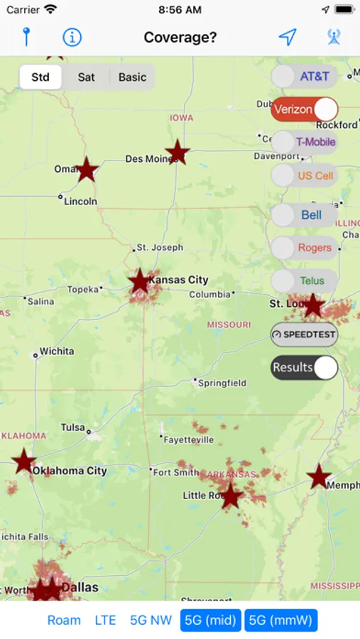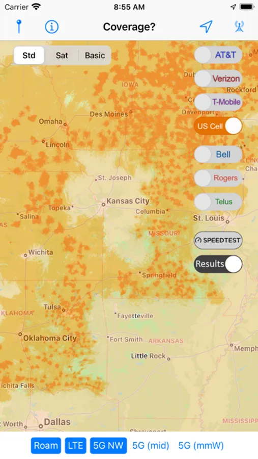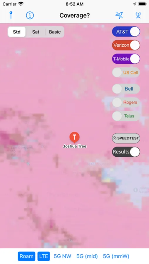 ** Know where to roam: view 5G, LTE, and roaming areas as overlays, focus on finding the coverage type you desire.