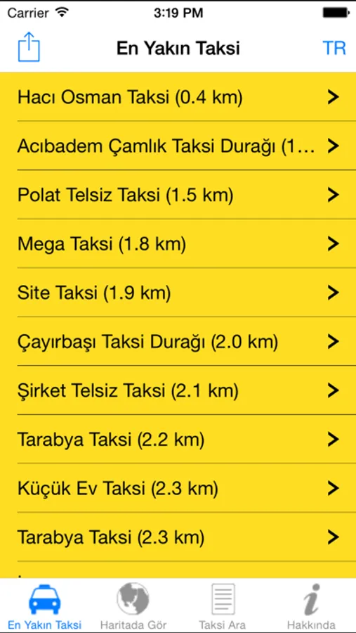* Size en yakın taksi duraklarını liste halinde ve harita üzerinde görebilirsiniz.