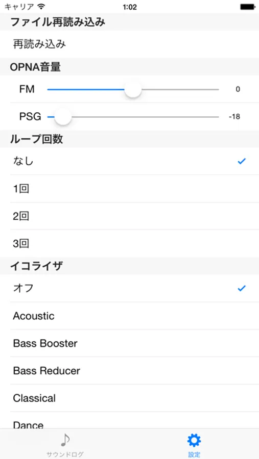 本ソフトウェアではループ回数とiPodイコライザを利用することができる他、OPMシリーズのログも演奏することができます。