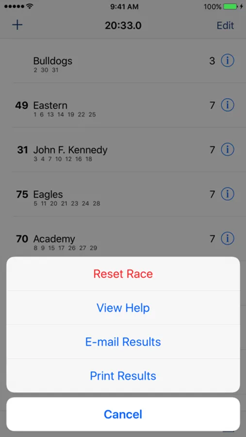 Note: when scoring a meet on an iPhone, you may want to enable Airplane mode to limit interruptions.