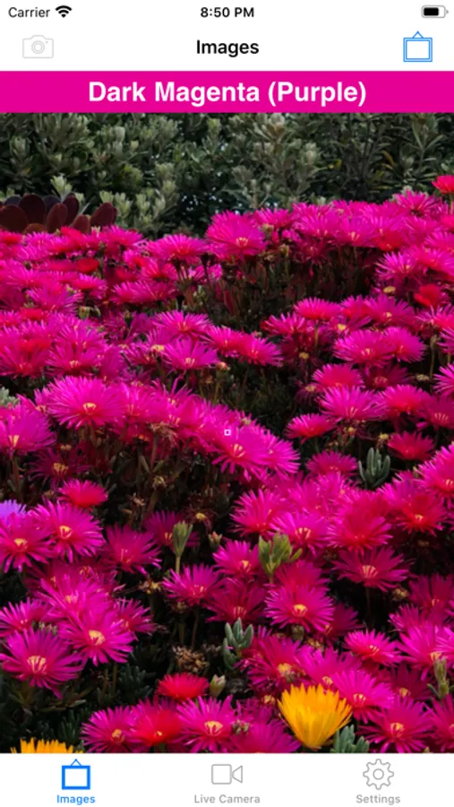 ColoredEye will identify the colors from your camera in real-time! Or you have option to identify colors within a saved photo.