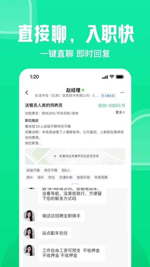 【聊天找工作】像微信一样,与主管在线聊天,直接招,入职快;