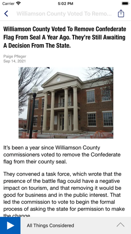 • The Nashville Public Radio App displays the web page associated with the program or program segment you are listening to On Demand so you can explore for more information.