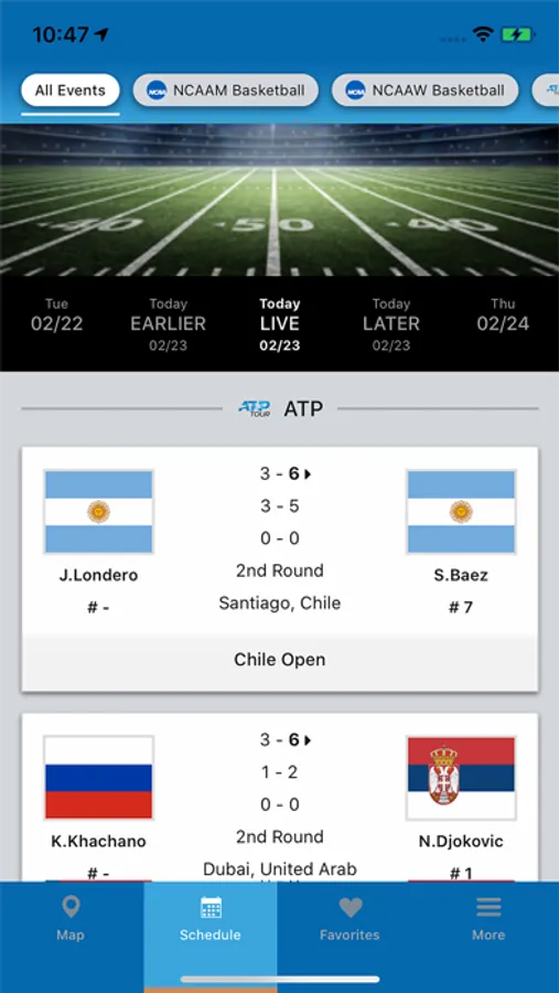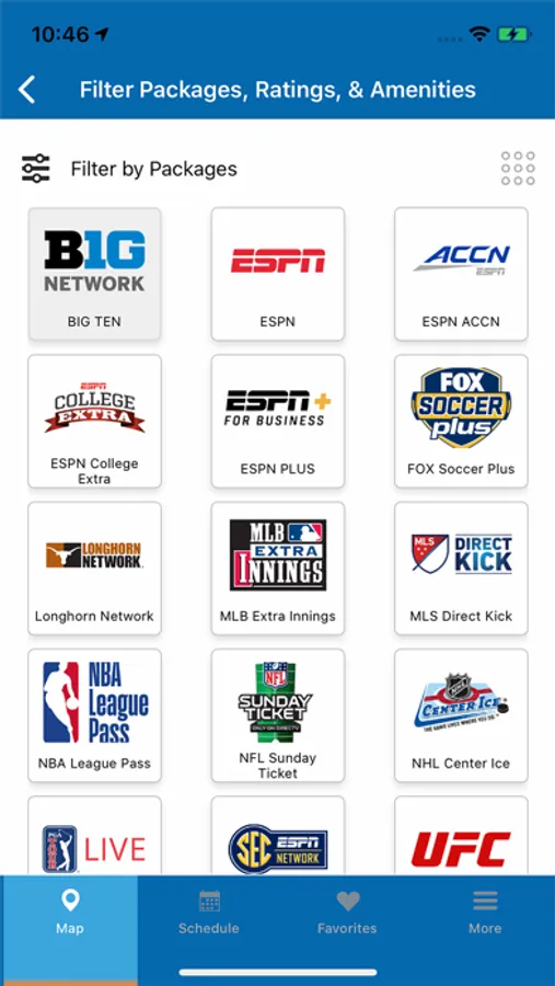 We’ve partnered with YELP to provide photos, star ratings, hours of operation and customer comments. You can filter results to find locations that have access to your desired game, team or sport—no matter which channel they are on. Create “favorites” so the locations and details of preferred sports bars & restaurants are always just a click away. Check out live scoring in-app to stay connected to all your favorite sports & teams!